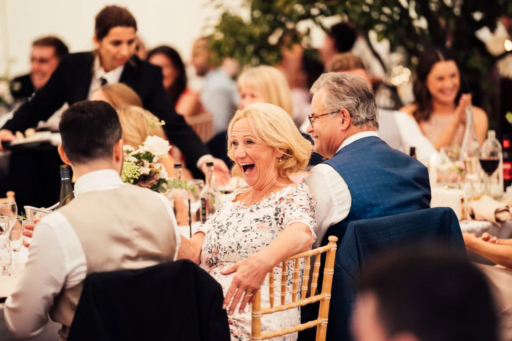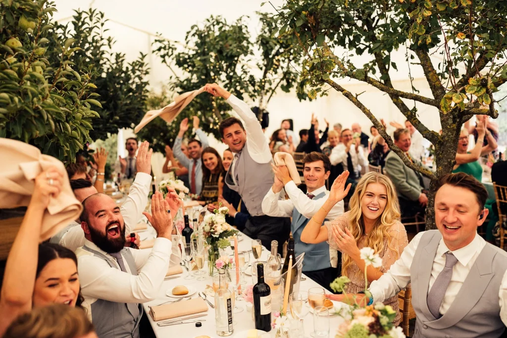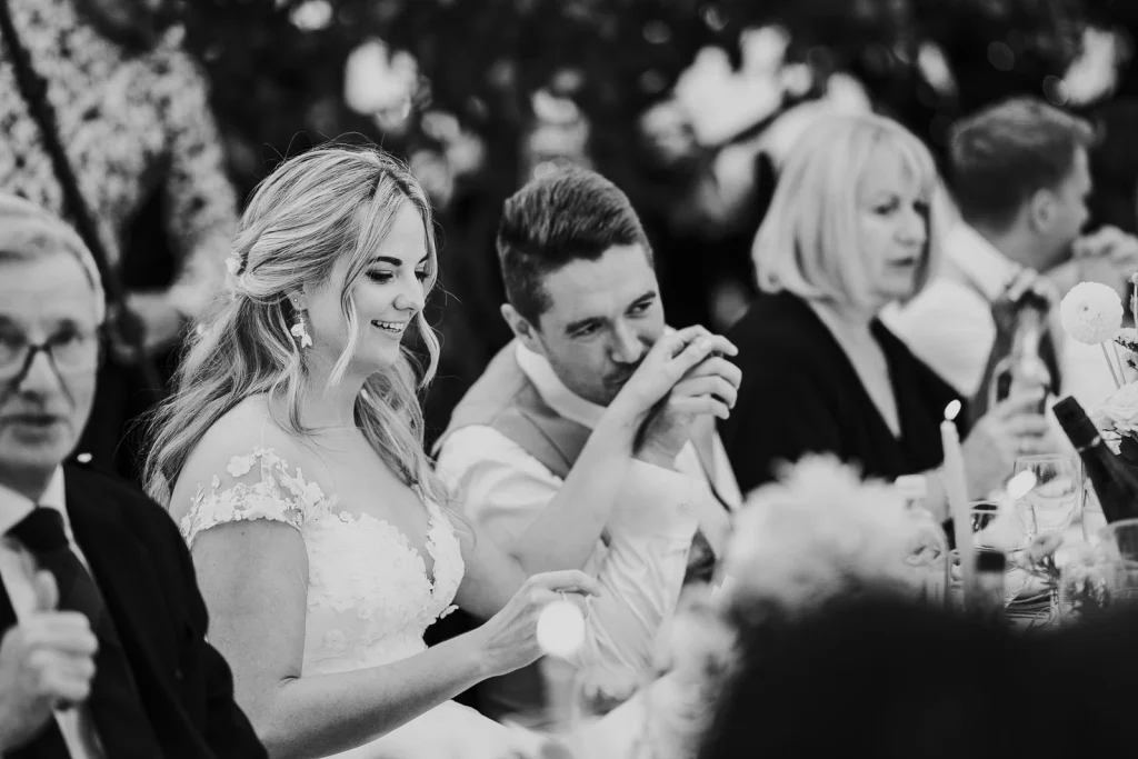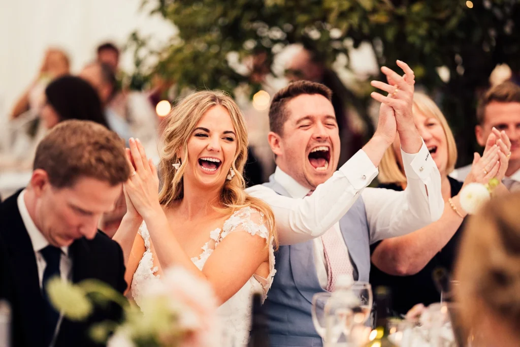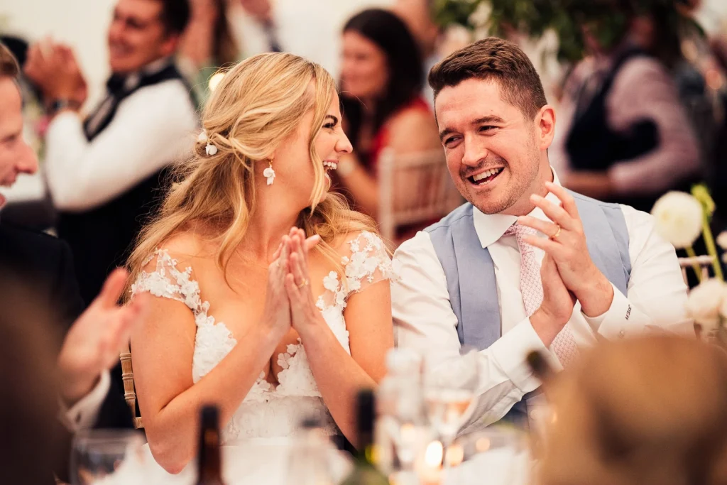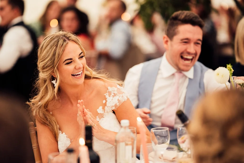 Back at White Pond Farm, guests gathered in a stunning marquee for the reception. The space was filled with personal touches, many crafted by Beana’s mum, including homegrown flowers and handmade decorations. It was a true reflection of the couple’s vision for a relaxed and personal celebration.