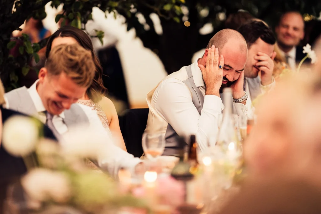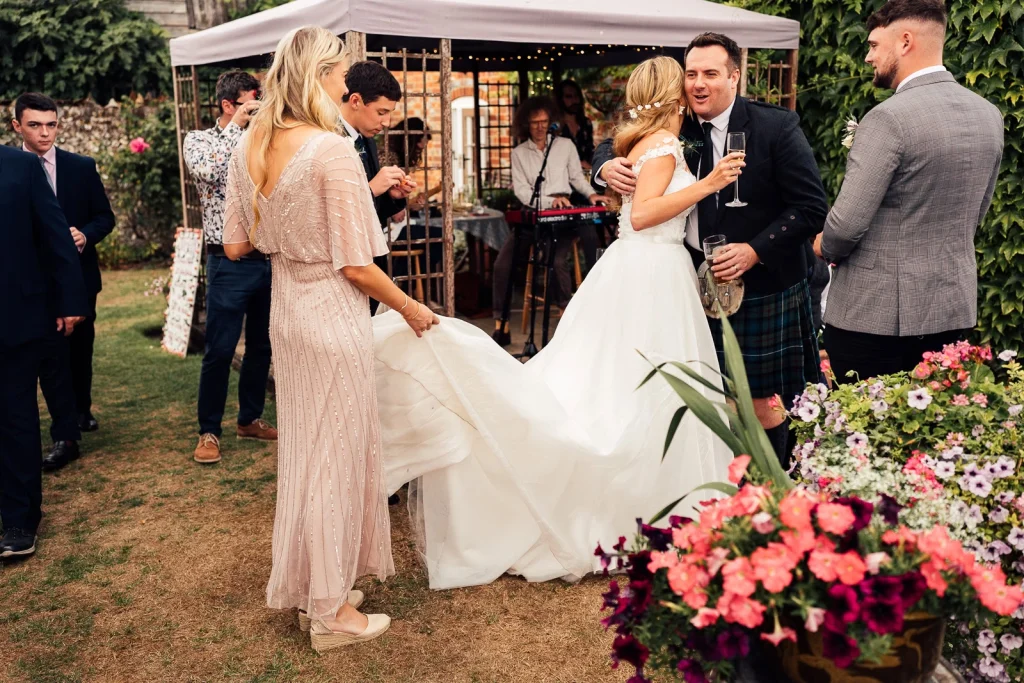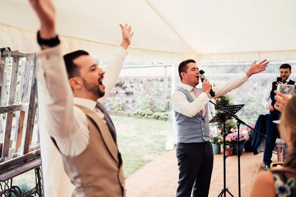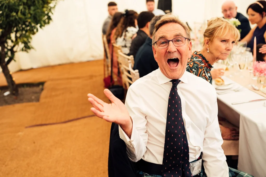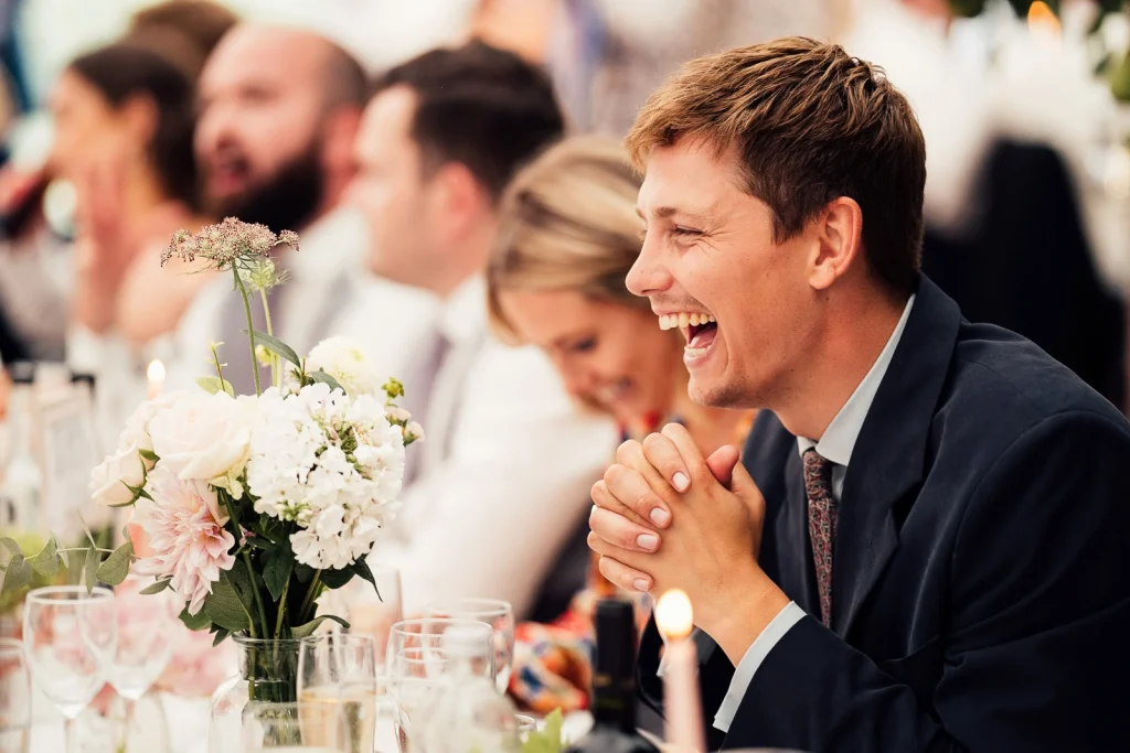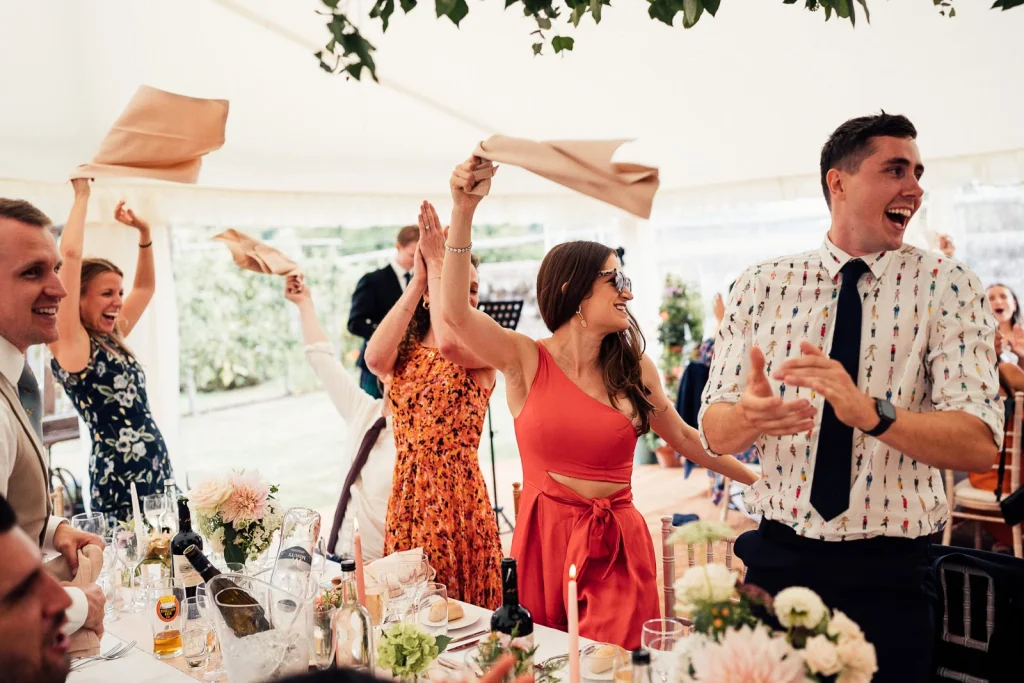 Back at White Pond Farm, guests gathered in a stunning marquee for the reception. The space was filled with personal touches, many crafted by Beana’s mum, including homegrown flowers and handmade decorations. It was a true reflection of the couple’s vision for a relaxed and personal celebration.