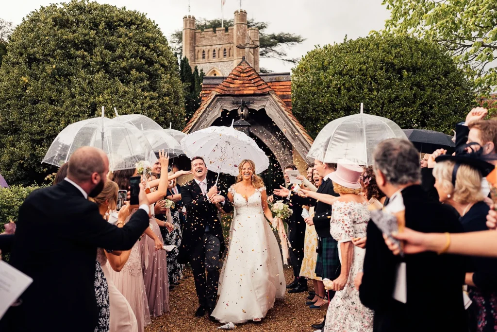 The couple’s ceremony took place in a nearby church, where their adorable dog made a special appearance—a delightful moment that had everyone smiling. As Beana and Jonny exchanged vows, you could feel the love and connection between them. After the ceremony, the heavens opened just in time for the confetti toss – in my opinion the umbrellas only made the pictures look better!