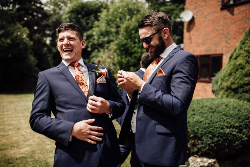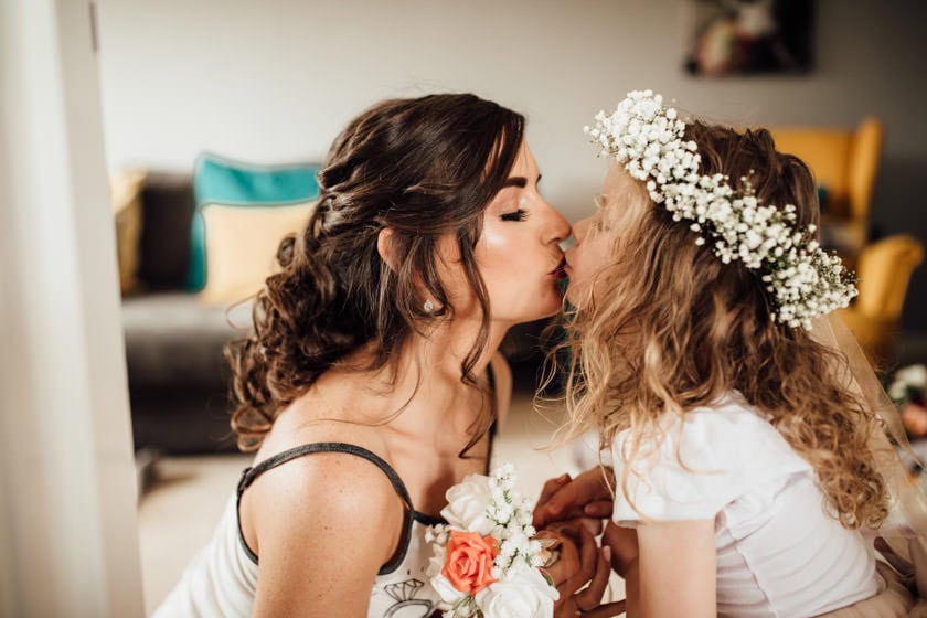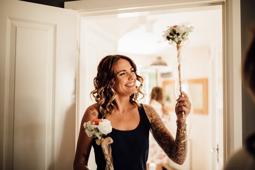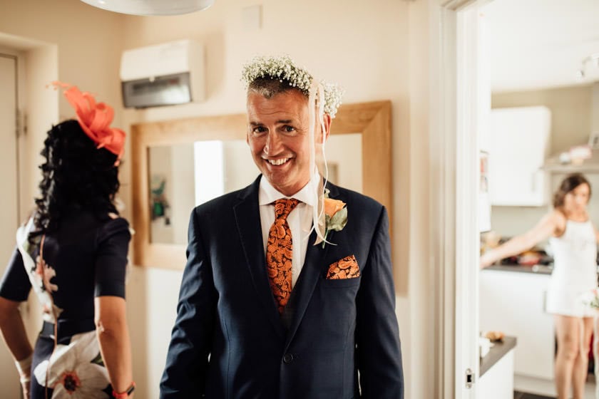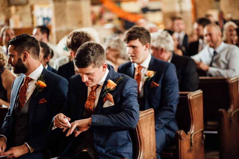 I first met Marie & Tom at their friends wedding last year and when they decided to book me, I knew it was going to be an amazing day! 🙂 Marie got ready at their house with her two daughters & bridesmaids, and the atmosphere was full of excitement. The bride then jumped into a fancy wedding car to get to the ceremony. Tom got ready at his parents house with all the lads. Funny fact from the day – you will notice on one of the photos that the trousers for one of the groomsmen arrived too short! Not something you want to be dealing with on your wedding day for sure, but the boys managed to swap it! 🙂