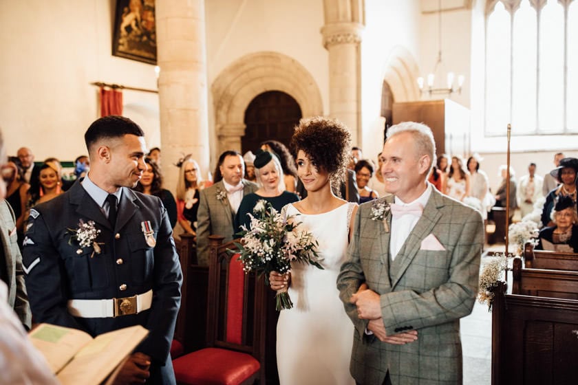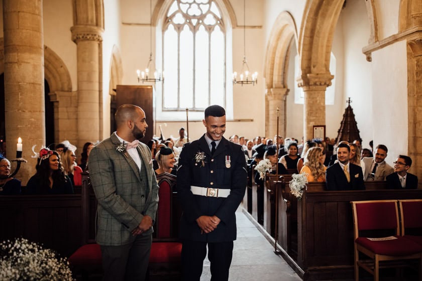 For the ceremony Callem wore his uniform as he works at the RAF, he then changed into a brown suit from Moss Bross and paired it with a bow tie & braces.